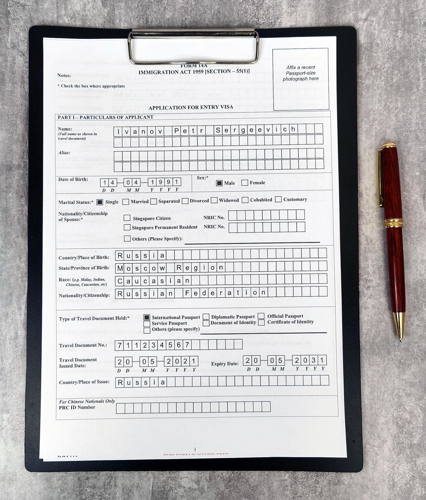 - Заграничный паспорт, действующий не менее 6 месяцев на дату въезда в Сингапур. Должен содержать хотя бы одну пустую страницу.
