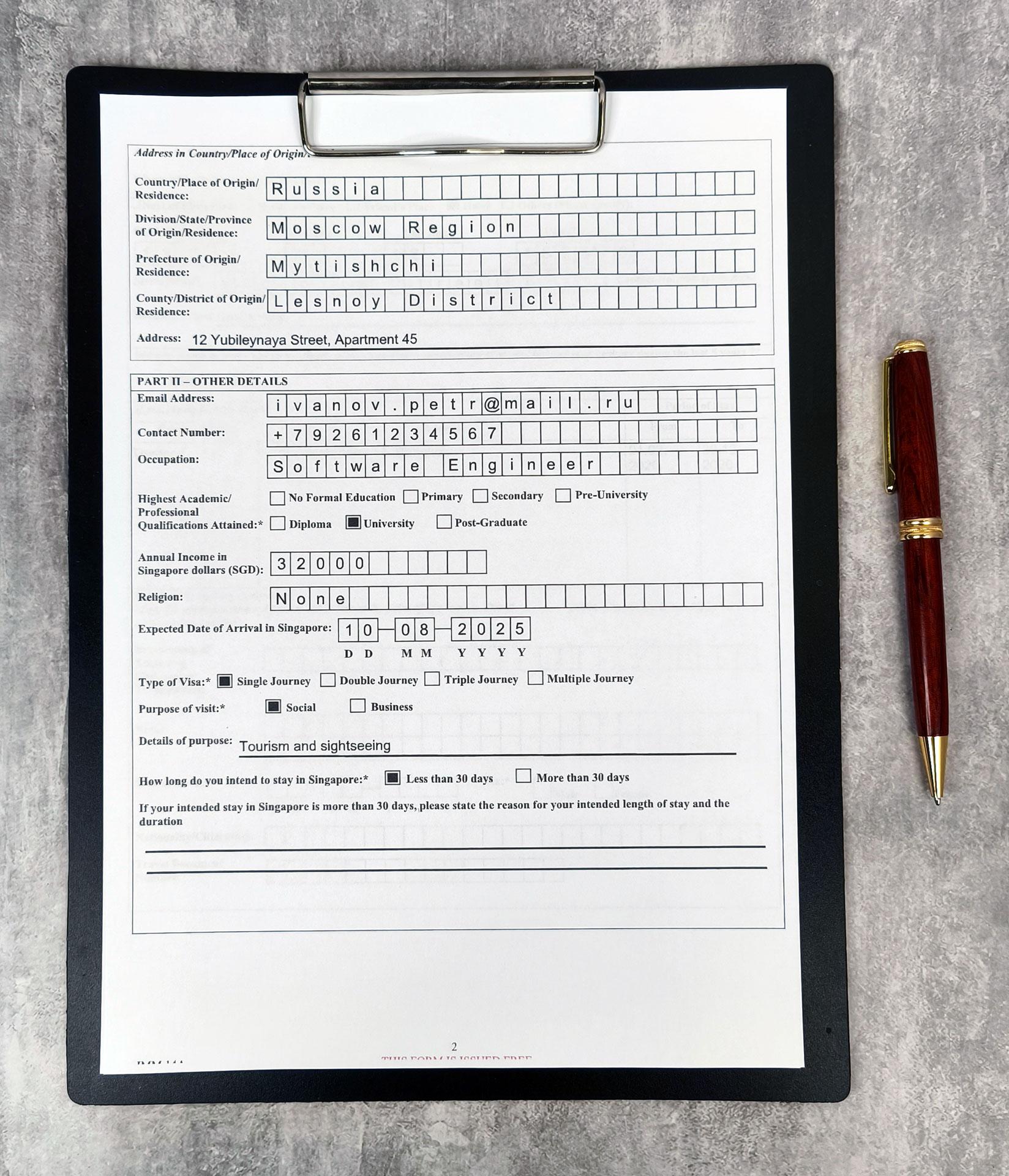 | Консульский сбор | 30 SGD (~2500–2700 ₽) | Оплачивается при подаче заявления. Не возвращается при отказе. |