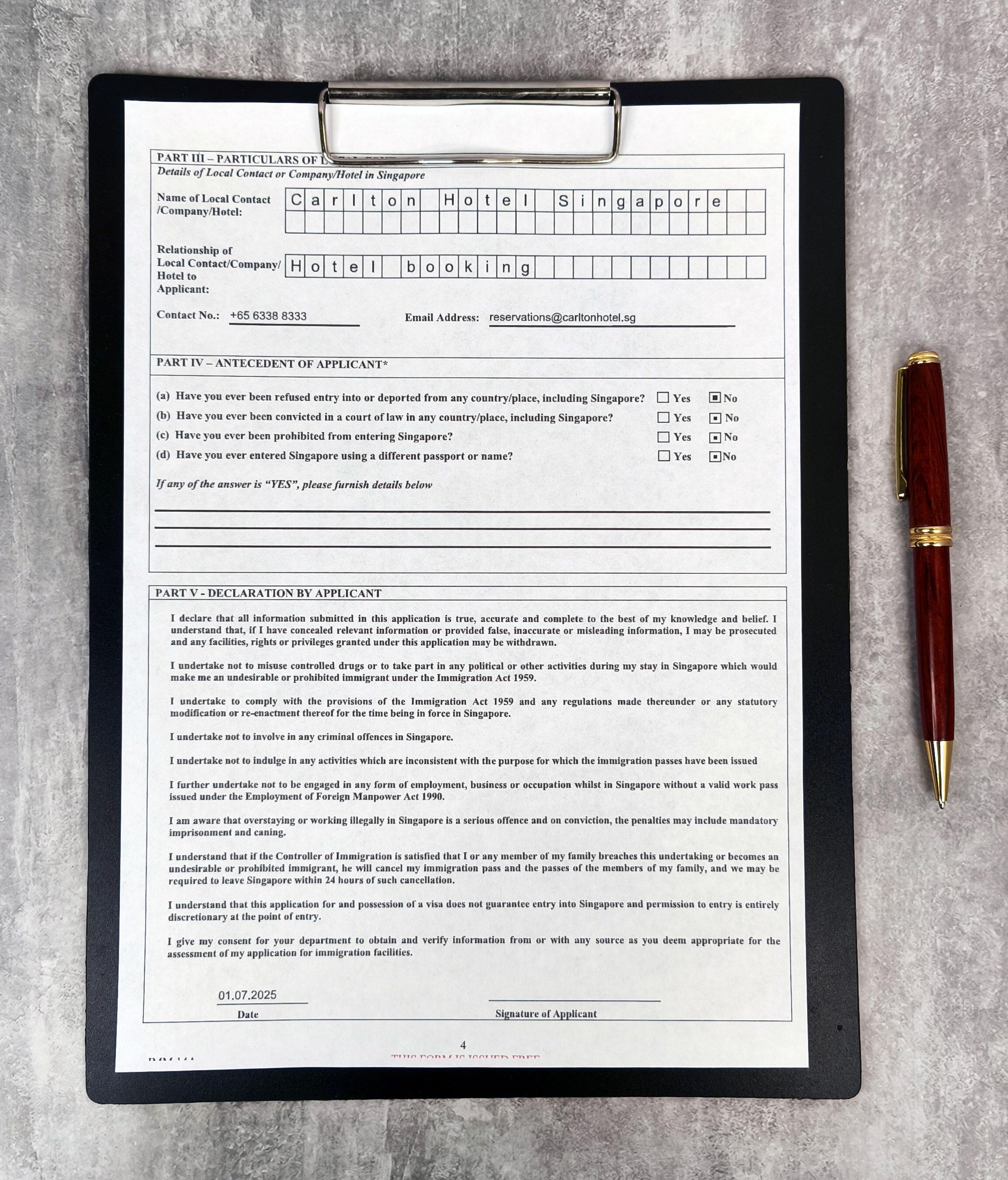 - через местного контактного лица в Сингапуре (гражданина или резидента с SingPass), который подаст заявление через онлайн-сервис ICA — eservices.ica.gov.sg/save.